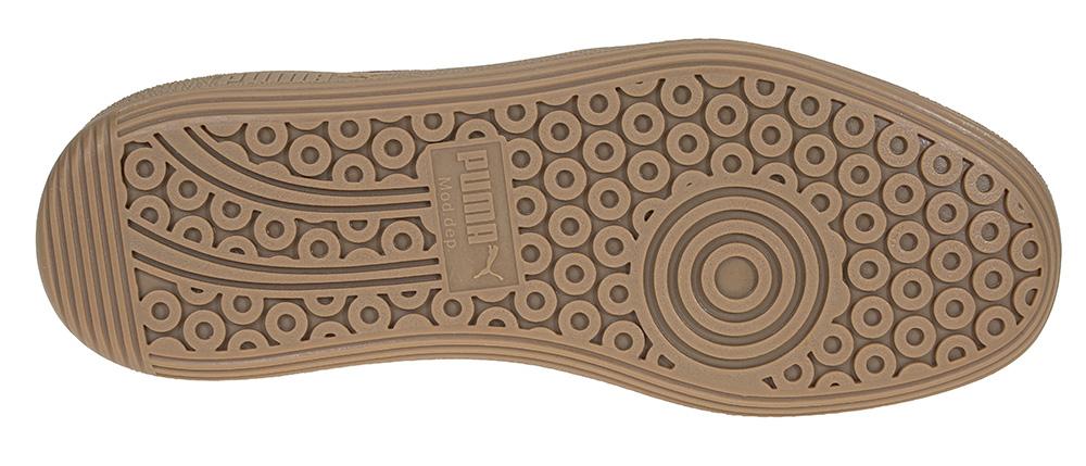 Puma logo printet i gull på utsiden av skoen på en skinnlapp.