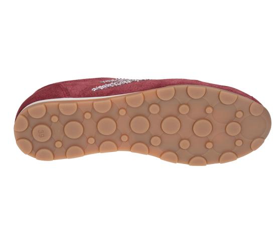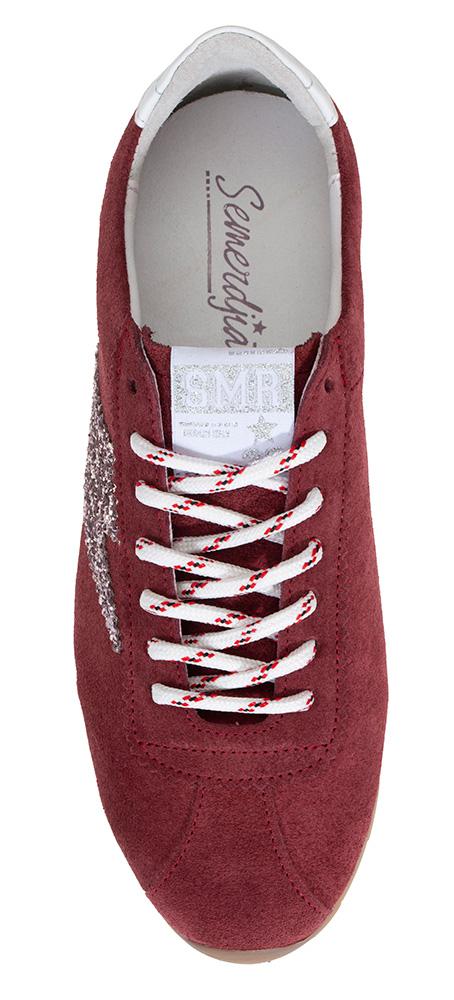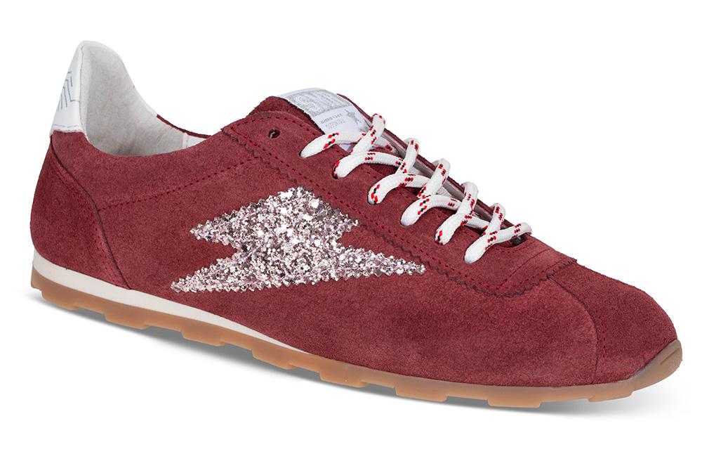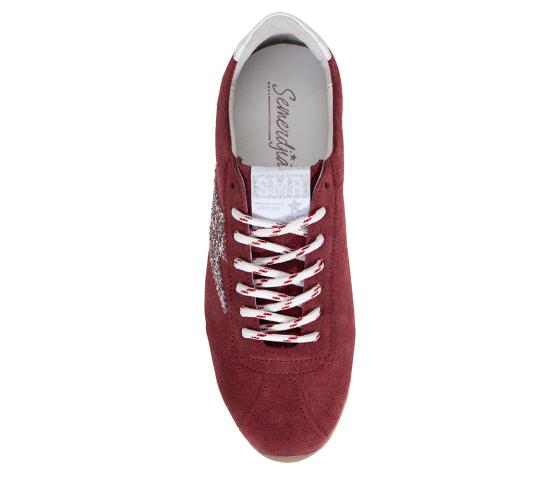 Sneakers fra franske SMR23 i mykt semsket skinn, fôret med skinn innvendig. Nett og fin modell som passer godt til det meste. Glitterlyn på sidene og fargeprikker på lissene.
