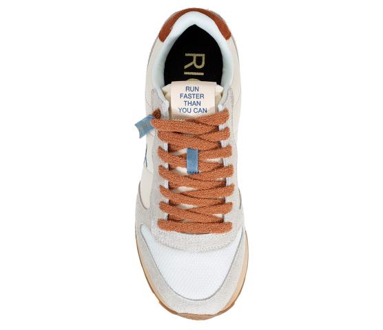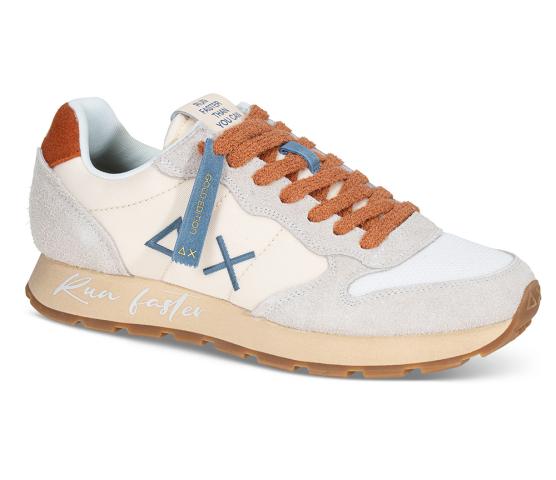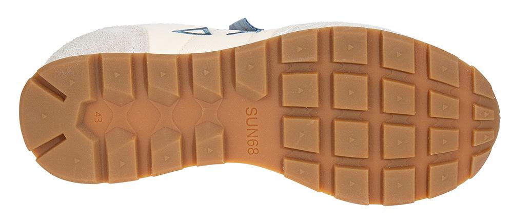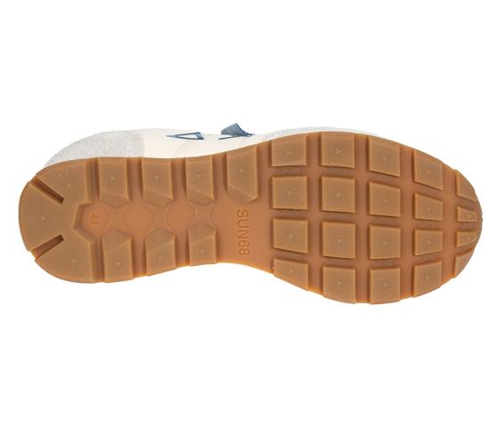 En retrosneakers fra SUN68. Modellen har et løpeinspirert design kombunert med moderne italiensk stil for en avslappet look. Overdelen blander myk semsket skinn og lett nylon for et stilrent uttrykk som har god fleksibilitet og pusteevne. Den ikoniske SUN68-logoen er satt på sidepanelet.