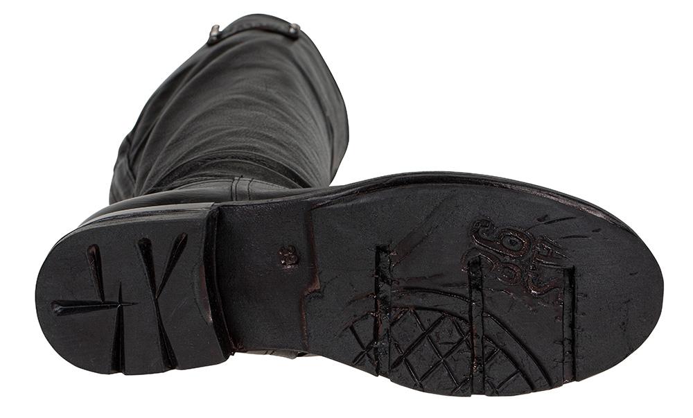 Støvlett i to lag flott skinn fra A.S.98. God og solid gummisåle! Høyt skaft som buer litt øverst på yttersiden og en skinnpynt med seks sølvnagler på. Kul detalj. Diskret metalldetalj på hælen.