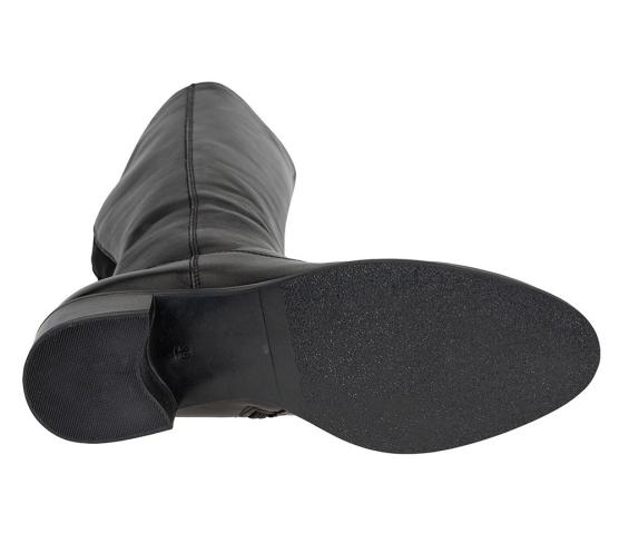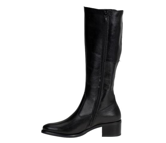 Fin støvlett i mykt blankt skinn . Liten elastikk på skaftet øverst bak for bittelitt ekstra vidde. Hæl på 5 cm er perfekt til hverdagsbruk.