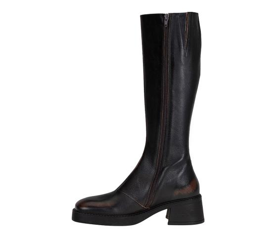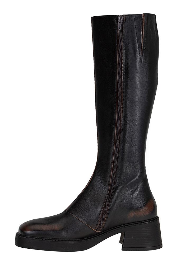 Yumi er designet i et skinn med en spesiell børsteeffekt. De garver læret med to forskjellige lag med farge – én farge under og én farge oppå. Vanligvis bruker vi den lysere fargen under. Dette er et spesielt designtrekk, så når vi børster av litt av den øverste fargen, vises fargen under og legger til en annen fargedetalj. Når du bruker dette paret, kan denne spesielle funksjonen vises mer på visse områder, for eksempel der hæler gnir mot hverandre eller på andre områder med friksjon. Denne effekten er en del av dette spesielle læret, og hvert par kan være litt ulike da alle parene er hådlagde. For en spennende støvlett!