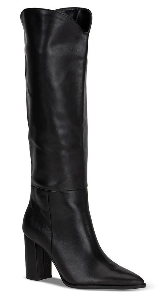 En boots fra Steve Madden du trer rett på. I glatt skinn utvendig og med en stødig hæl. Vi digger den spisse tuppen og det enkle, men pene utseende.