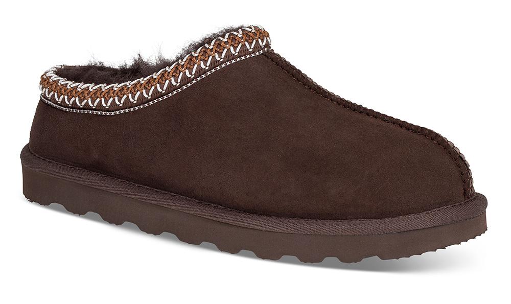 Myke og herlige slipons. Modellen er utstyrt med et herlig, tykt og varmt saueskinnsfôr på hele innsiden. En fin mønstret kant langs åpningen gjør at tøffelen sitter godt på foten. Modellen er litt liten, så vipper du mellom to størrelser - velg en størrelse opp. NB! Sålen er ment til også å kunne brukes utendørs.